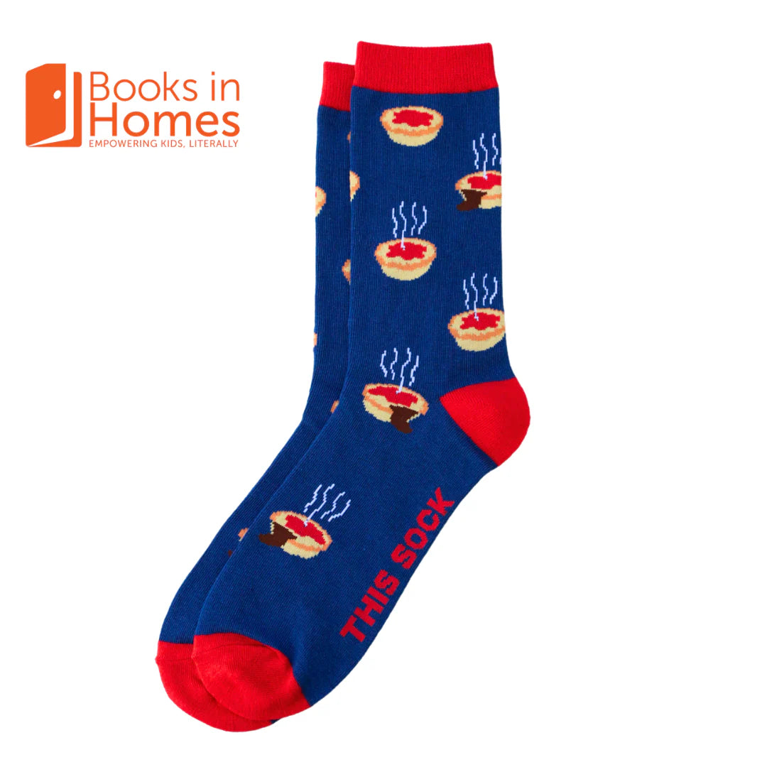 Contents: 1 x pair of Chicken Parmigiana Sock; 1 x pair of Meat Pie Sock; 1 x pair of Cheese Toastie Sock; 1 x pair of Sausage Sizzle Sock; 1 x pair of Fairy Bread Sock.