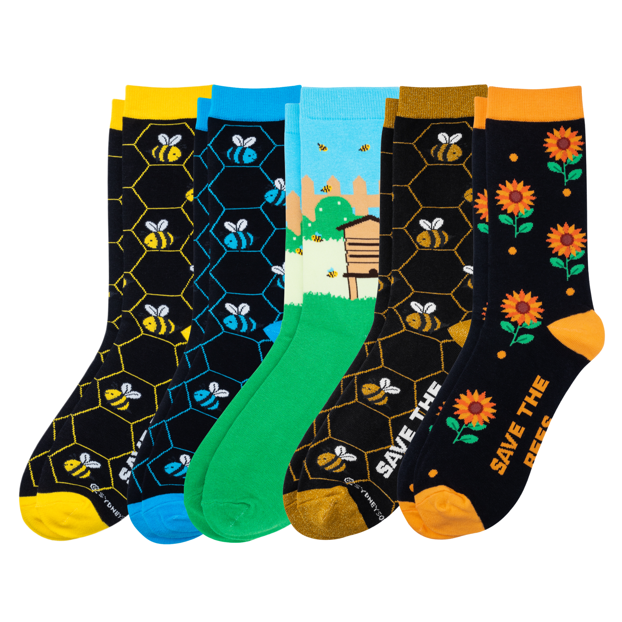Contents: 1 x pair of Bee Sock; 1 x pair of Blue Banded Bee Sock; 1 x pair of Golden Bee Sock; 1 x pair of Bee Garden Sock; 1 x pair of Sunflower Sock.