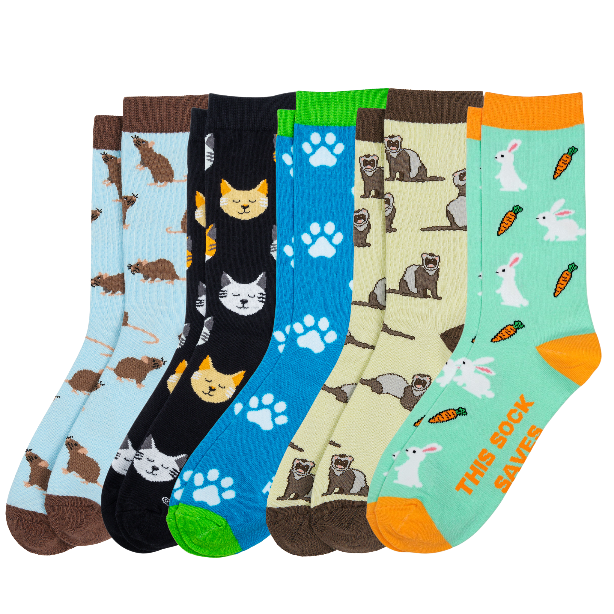 Contents: 1 x pair of Bunny Rabbit Sock; 1 x pair of Cat Sock; 1 x pair of Dog Paws Sock; 1 x pair of Ferret Sock; 1 x pair of Capybara Sock.