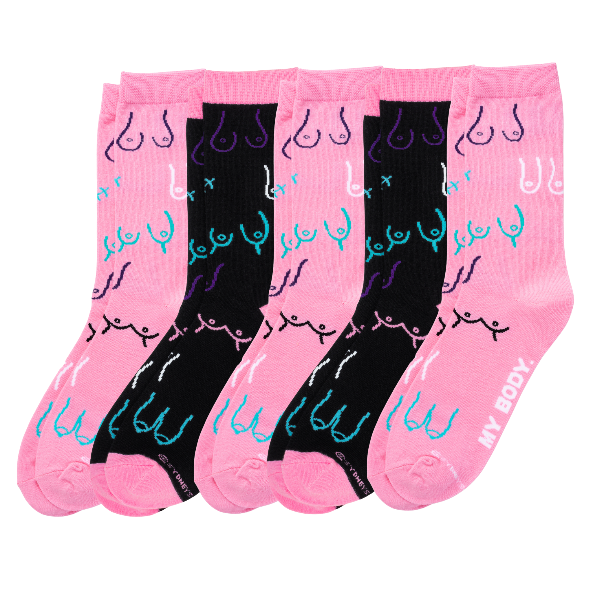 Contents: 3 x pairs of Pink Boob Sock; 2 x pairs of Boob Sock.